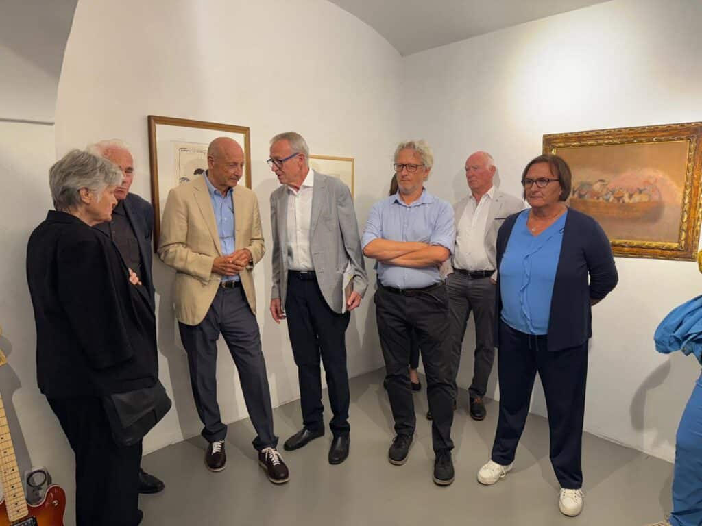 Zur Vernissage am 1. August 2025 begrüßten die beiden Kuratoren zahlreiche Gäste und gaben Einblick in Leben und Werk von Zoran Mušič, der auch im kärntnerischen Griffen gelebt hat. Besonders Siegbert Metelko stellte in seiner Einführung prägnant die Verbindung zwischen Mušičs Biografie, seinem künstlerischen Schaffen und der gewählten Motivik heraus.